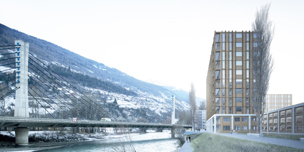 Projet pour une sous-station électrique, des bureaux, un parking-silo et des logements, Sion, LR architectes, 2022 Similaire